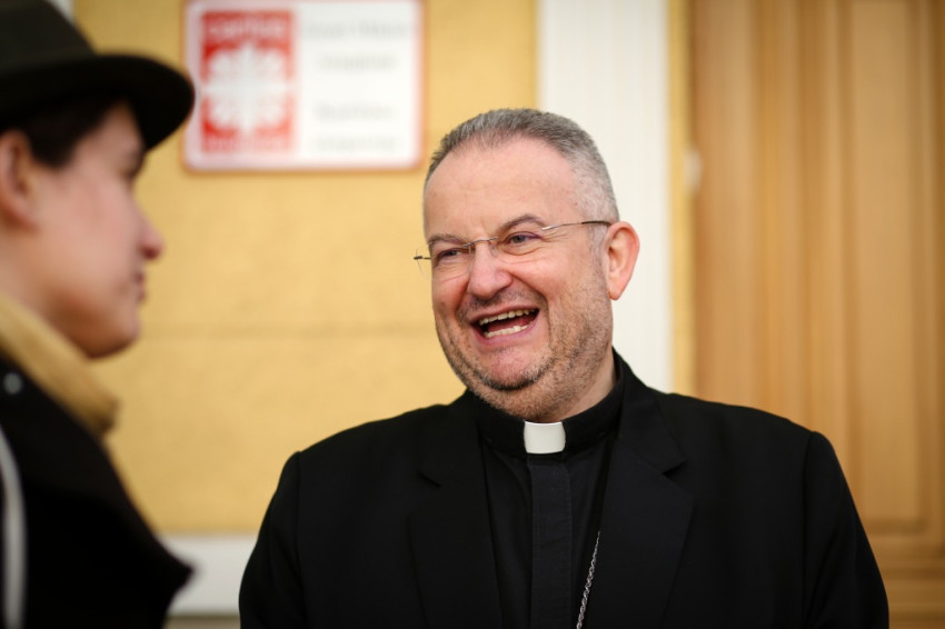 A kereszt megáldása után következett a szegények ebédje, melyet Pintér Gábor nuncius nyitott meg és szolgált fel. Belarusz apostoli nunciusa, aki egy Kecskeméthez közeli településről, Csépáról származik, nem először járt a Karol Wojtyła Barátság Központban: részt vett például 2016. december 24-én is az intézmény által ellátottak karácsonyán, ahol az ételosztásban segédkezett, előadást tartott, és el is beszélgetett a rászorulókkal. Pintér Gábor elárulta, mindig is szívügyének tekintette a rászorulókkal való foglalkozást, hiszen a szegénységnek európai gondolkodással felfoghatatlan formáival találkozott diplomáciai szolgálata során Haitiban, Bolíviában és a Fülöp-szigeteken.