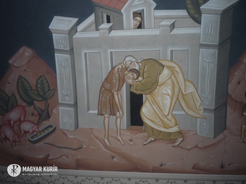 Az egyik freskó a tékozló fiú történetét idézi fel, a másik oldalon látható festményen az Úr Jézus megáldja a gyermekeket. Ezt a témát Makláry Zsolt festőművész javasolta; a kupolában, a templomhajóban és a szentélyben lévő ikonok is mind az ő keze munkáját dicsérik – mondta el Jeviczki Ferenc.
