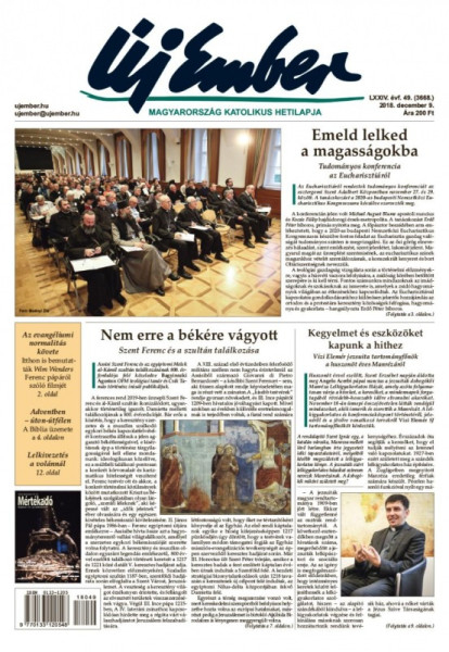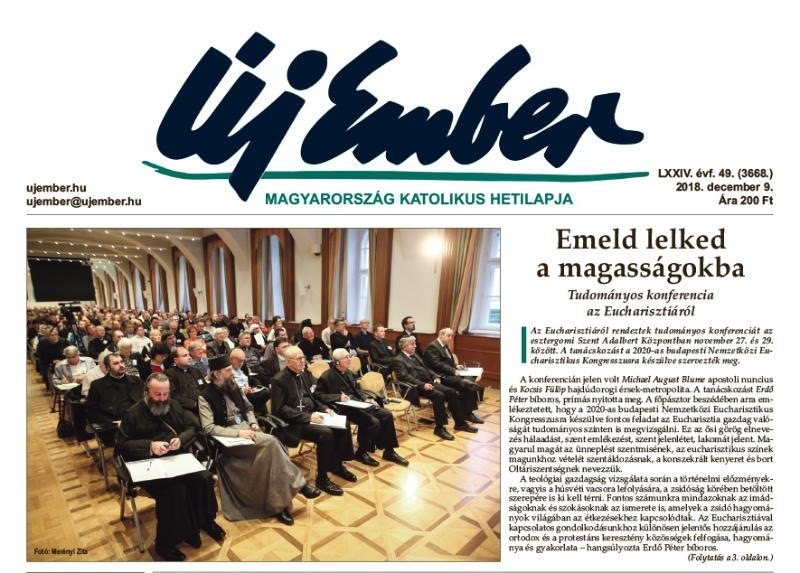 A címoldalon kezdődik összefoglalónk az Eucharisztiáról szóló tudományos konferenciáról, amelyet az esztergomi Szent Adalbert Központban rendeztek meg november 27. és 29. között. A tanácskozásra a 2020-as budapesti Nemzetközi Eucharisztikus Kongresszusra készülve került sor. A konferencián, melyet Erdő Péter bíboros, prímás nyitott meg, jelen volt Michael August Blume apostoli nuncius és Kocsis Fülöp hajdúdorogi érsek-metropolita.