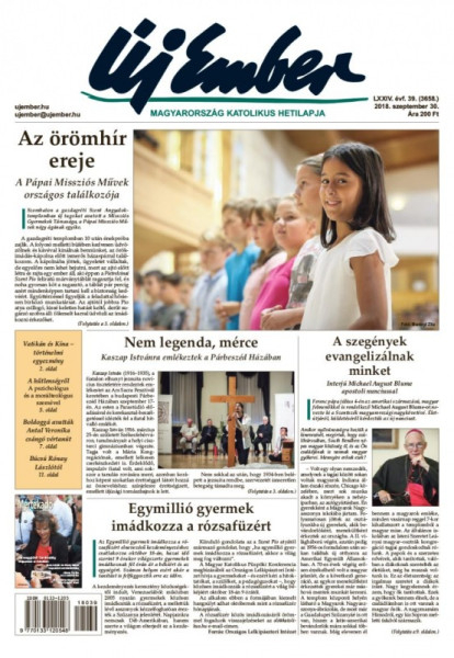A címlapon tudósítást közlünk a Pápai Missziós Művek országos találkozójáról, mely során a gazdagréti Szent Angyalok-templomban a Missziós Gyermekek Társaságának új tagjait avatták. Interjút olvashatnak Michael August Blume-mal, a Szentszék új magyarországi nagykövetével. Kaszap Istvánra, a fiatalon elhunyt jezsuita novíciusra emlékeztek az Ars Sacra Fesztivál keretében a budapesti Párbeszéd Házában szeptember 17-én. Az esten felidézték a fiatal hitvalló emlékét.