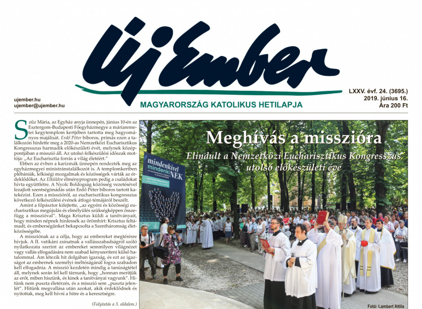 A címlapon kezdődő riportunkban arról olvashatnak, hogy Szűz Mária, az Egyház Anyja ünnepén, június 10-én a máriaremetei kegytemplom kertjében tartották meg az Esztergom-Budapesti Főegyházmegye hagyományos majálisát. Erdő Péter bíboros, prímás ezen a találkozón hirdette meg a 2020-as Nemzetközi Eucharisztikus Kongresszus harmadik előkészületi évét, melynek középpontjában a misszió áll. Az utolsó felkészülési időszak mottója: „Az Eucharisztia forrás a világ életéért”.