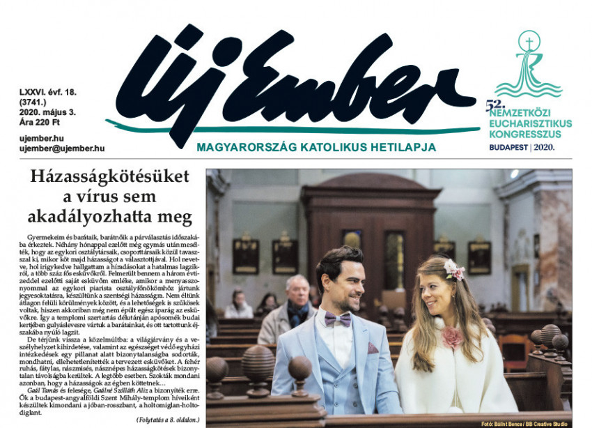 Házasságkötésüket a vírus sem akadályozhatta meg – ezzel a címmel indul vezető írásunk egy bátor, elkötelezett házaspárról. Gaál Tamás és felesége, Gaálné Szólláth Aliz a budapest-angyalföldi Szent Mihály-templom híveiként készültek kimondani a jóban-rosszbant, a holtomiglan-holtodiglant. A járvány beköszöntével a nászmisés esküvőjük veszélybe került. Ám semmiképpen sem szerették volna elnapolni a szentségi házasságkötést. A templomi esküvő különleges módon mégis megvalósult, sallangok nélkül, meghitt formában. A szertartás után a lagzi helyett egy teljesen üres étterembe ültek be öten. Alig több mint egy órájuk maradt az ebéd elfogyasztására, hiszen a hatósági előírásoknak megfelelően 15 órakor a vendéglő bezárt. Boldogságukat azonban nem árnyékolhatták be a körülmények.