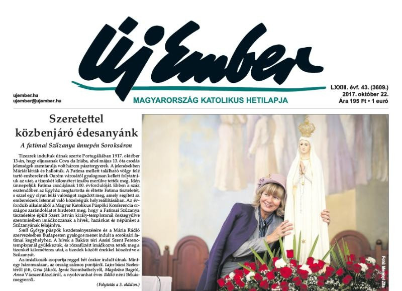 A címlapon kezdődik tudósításunk a fatimai jelenések 100. évfordulója alkalmából a Magyar Katolikus Püspöki Konferencia által megrendezett országos zarándoklatról, amely a Fatimai Szűzanya tiszteletére épült soroksári templomhoz vezetett október 13-án. Az egybegyűlt mintegy hatezer hívő előtt Erdő Péter bíboros, prímás felajánlotta országunkat és népünket a Fatimai Szűzanyának. A jubileum alkalmával konferenciát is rendeztek, amelyen teológusok tartottak előadásokat Szűz Máriáról.