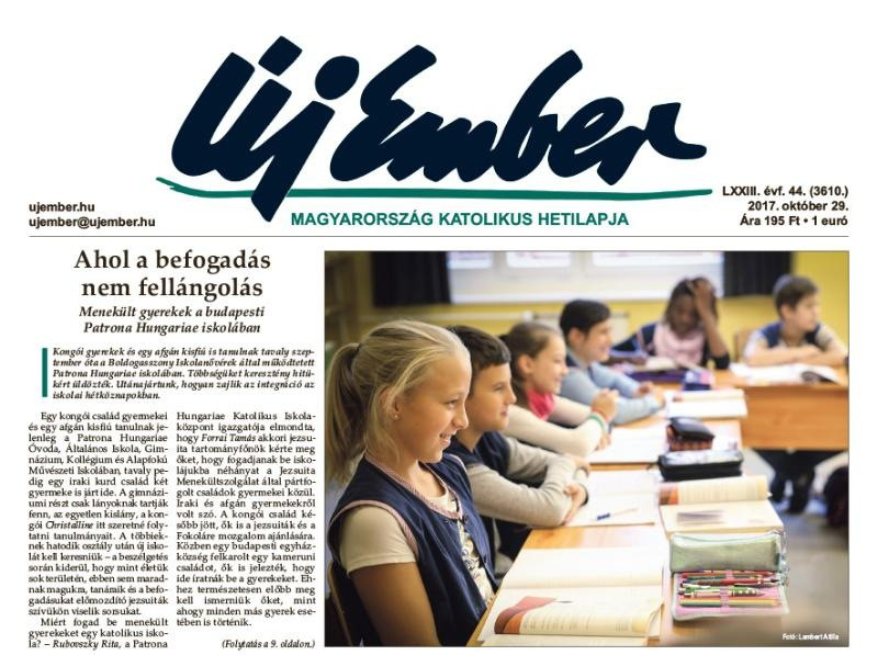 A címlapon kezdődik riportunk a Patrona Hungariae Katolikus Iskolaközpont bátor vállalásáról, a menekült gyermekek befogadásáról. A riportban az igazgatónő, a programban részt vevő tanárok és gyermekek mondják el tapasztalataikat.