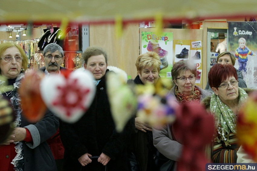 Az üzletház földszintjén nagyjából százféle ajándék- és dísztárgy, hasznos holmi közül válogathatnak az érdeklődők, valamennyit a szegedi Karitász Alkotóházban készítették vagy ajánlották fel önkéntesek. Ebbe a jótékony munkába idén több mint százhúszan kapcsolódtak be. Kothencz János hangsúlyozta, nemcsak a tárgyakat kell látni a vásár kínálatában, hanem azt a szeretetet is, amellyel azok készültek; „ilyenkor, adventben sem feledkezhetünk meg azokról, akik nem szeretetteljes családi körben, hanem egyedül töltik az ünnepeket; azt is üzenjük ezzel a vásárral, hogy senki sincs egyedül”.