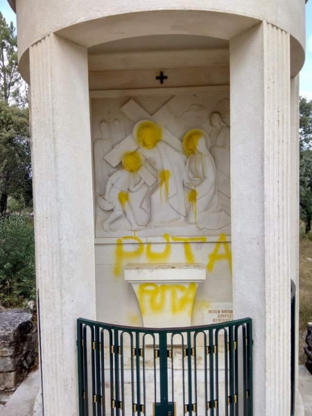 Az ismeretlen elkövetők sárga festékkel fújták le a domborműveken szereplő alakokat, majd obszcén feliratokat festettek alájuk. A fatimai kegyhely üzemeltetői közölték, az esetet jelentették a hatóságoknak. Bár a helyreállítást azonnal megkezdték, hosszú időt fog igénybe venni, mivel a stációk speciális kőből készültek, emellett számos műemlékvédelmi előírást is be kell tartani a tisztítás során. Amíg a munka folyik, a zarándokok nyugalmának megőrzése érdekében a kápolnákat paravánnal takarják el, melyen a domborművek rongálás előtti állapota lesz látható.