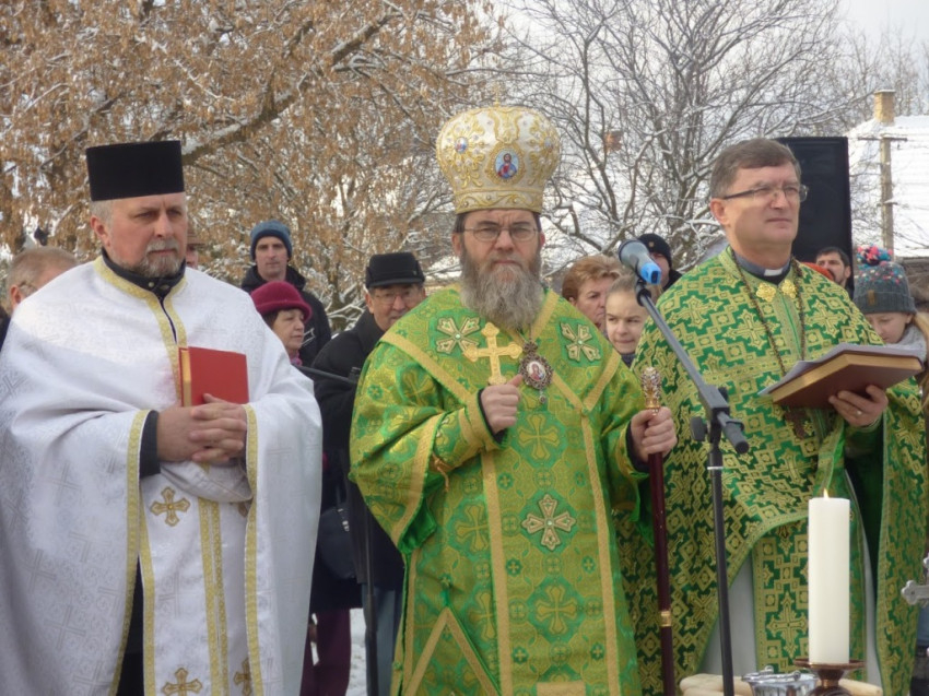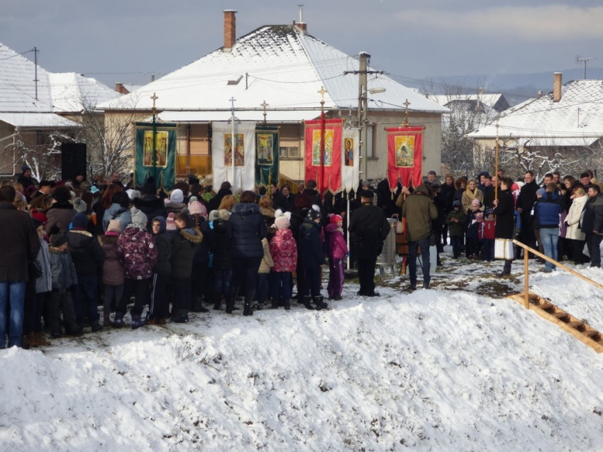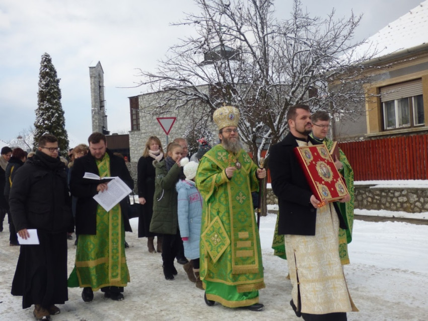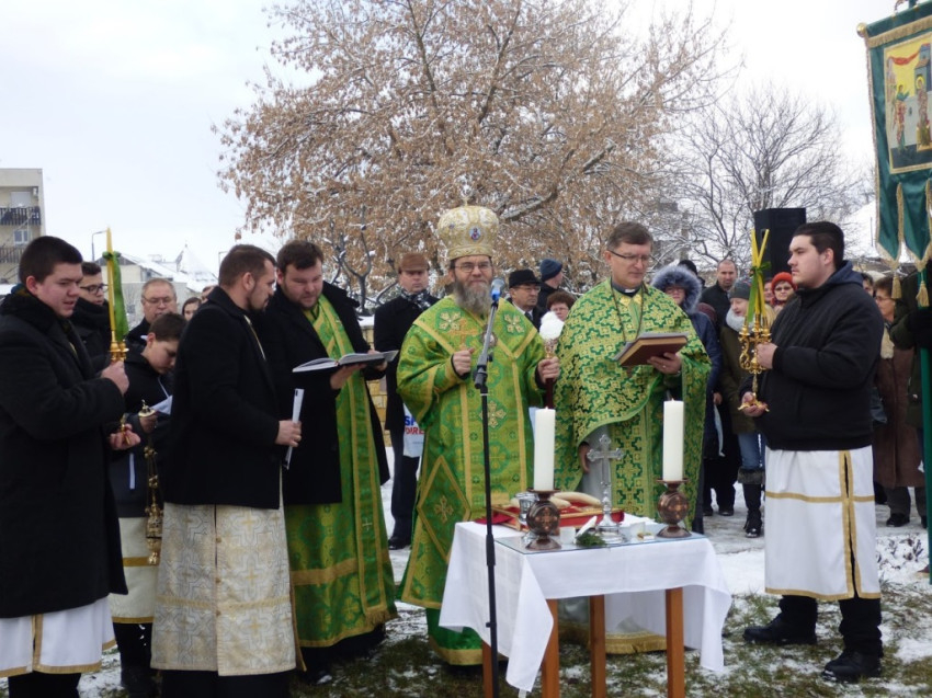 A Szent Liturgia végén a közösség ünnepi körmenetben vonult a folyó partjára, ahol elvégezték a vízszentelés szertartását. A szenteléshez kapcsolódó szentírási részek felolvasása után Orosz Atanáz püspök megszentelte a parton elhelyezett vizeket és a Bódva vizét; háromágú gyertyát mártva bele, kezével keresztet rajzolt a folyóba, a vízre lehelve kérte a Szentlélek eljövetelét, majd a keresztet háromszor merítette a vízbe. A szertartás végén a megszentelt vízzel hintette meg a felnőtt híveket és az iskolás gyerekeket.