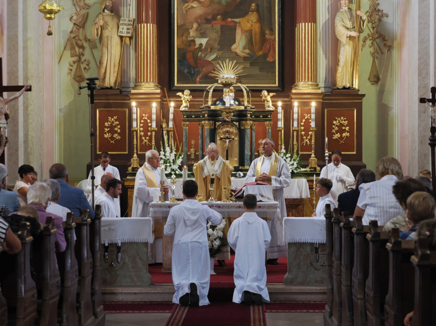 Az ünnepi szentmisén Udvardy György veszprémi érsekkel koncelebrált Tál Zoltán jelenlegi és Bakos Frigyes korábbi plébános.