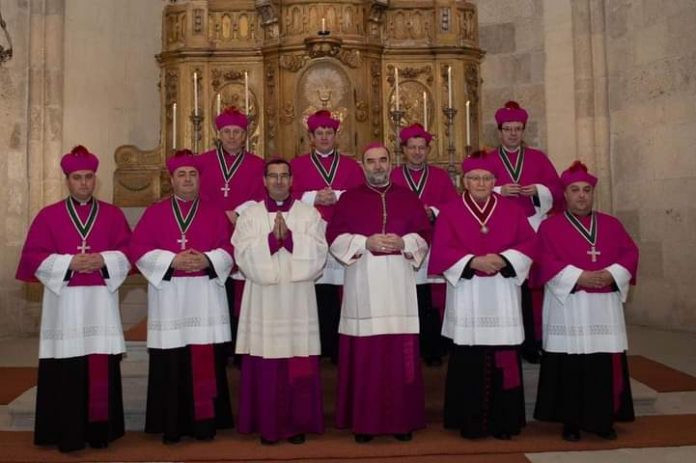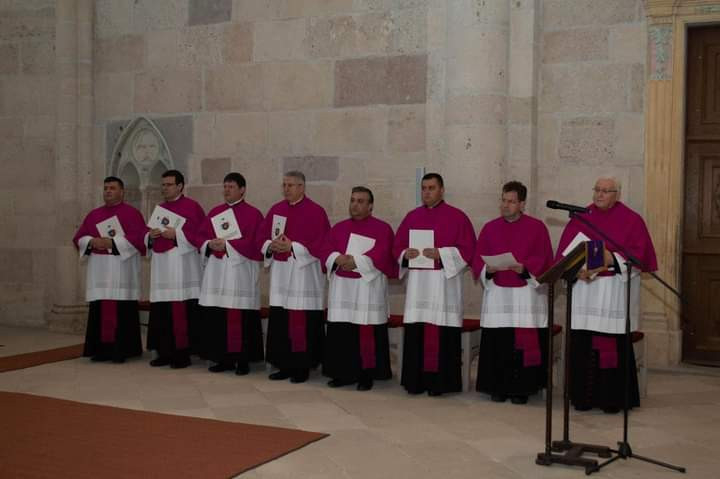 A képen balról jobbra: Veres Stelian őrkanonok, András István mesterkanonok, Hurgoi János, a levéltár őre kanonok, Oláh Zoltán teológuskanonok, Farkas Ervin iskoláskanonok, Kiss Endre éneklőkanonok, László Szabolcs penitenciárius kanonok és Marton József nagyprépost.