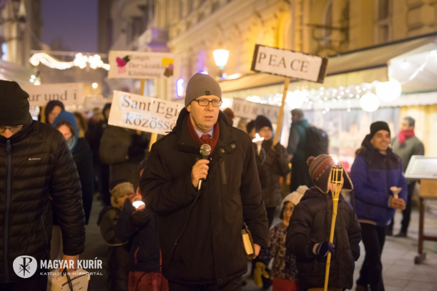 A rakparton egybegyűltek mécsesekkel a kezükben, a háború és konfliktusok sújtotta országok tábláit a magasba emelve vonultak végig a Váci utcán, majd a belvárosi Szent Mihály-templomban ökumenikus imádságon vettek részt.