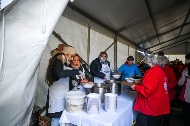 A székesegyház előtt felállított sátorban a Karitász munkatársain kívül többek között Nemény András szombathelyi polgármester; László Győző alpolgármester; Majthényi László, a Vas Megyei Közgyűlés elnöke; Szabó Tibor, a szombathelyi Weöres Sándor Színház igazgatója szolgálták fel az ételeket.
