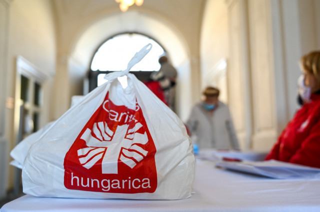 A püspöki palotában a – többek között – tojásból, lisztből, tésztából álló csomagot vehették át az emberek.