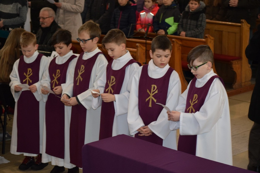 A március 4-i ünnepi szentmise elején a régi minisztránsok és a beöltözésre várók egymással szemben álltak fel az oltár előtt. Utóbbiak a kezükben hozott felső ruhájukat, a viola színű skapulárét a kihelyezett asztalra tették, hogy a fölvétel előtt Berkes László plébános megáldja azokat. Az ígérettétel után egyenként, nevükön szólítva kapták meg a megáldott ruhát, és kifejezték azt, amit az Úr Jézus nemcsak Szent Péter apostoltól, hanem mindannyiunktól kér: „Fogadd a minisztránsok ruháját, és szeresd nagyon az Úr Jézust, akinek szolgálni fogsz!” – „Szeretni fogom!” – hangzott a válasz, röviden és egyértelműen.