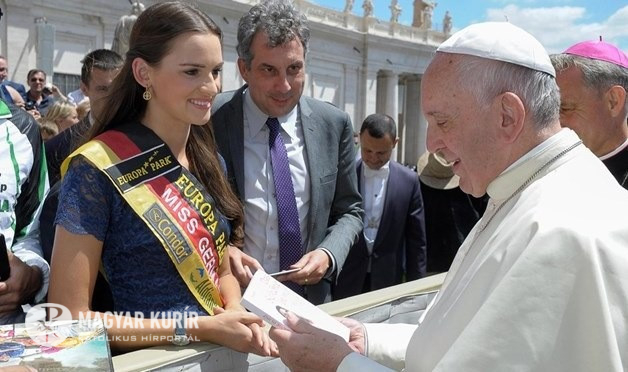 A Szentatya kezébe vette a könyvet, halkan megismételte a címét – mondta a szépségkirálynő, aki még arra is megkérte Ferenc pápát, hadd készítsen egy szelfit találkozásukról.