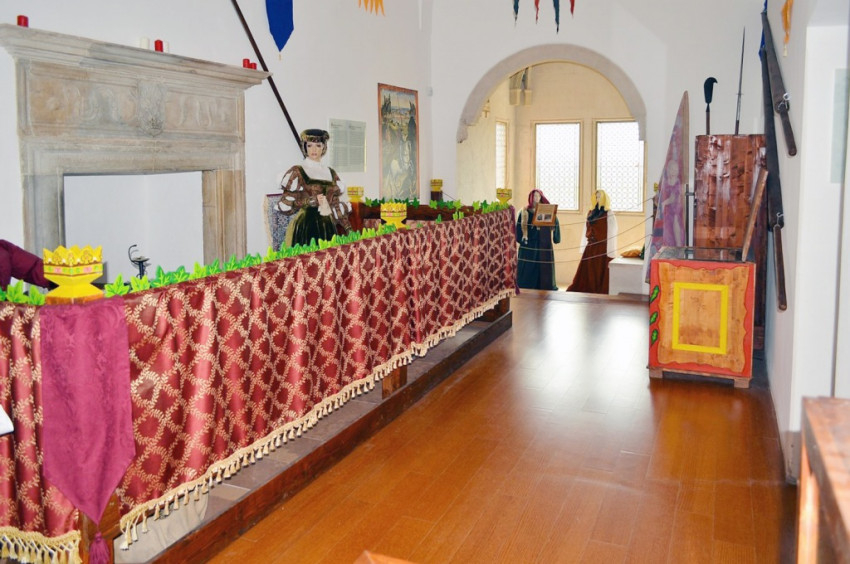 Aki nem tudja, milyen a sásélű hegyes tőr és a lóra való pallos, a huszársodrony, a kanócos muskéta, az megtekintheti a déli szárny első emeleti középkori fegyver- és hadtörténeti kiállításán, melynek rendezői négy teremben mutatják be a Luxemburgi Zsigmond uralkodásától a Rákóczi-szabadságharcon át a 18. század elejéig használatos páncélokat, fegyvereket, sisakokat. Egyes sisakfajtákat – persze könnyű műanyagból, ám élethűen megformálva – magunk is felvehetünk. Csattognak a vakuk az alkalmi csatában, de nemcsak itt, hanem Kanizsai Dorottya nádorasszony imafülkéje előtt állva is. A vár egykori lakójának parányi, mintegy két négyzetméternyi területű, falba épített, lapos dongaboltozatú imafülkéje csak néhány éve került elő. A vár felújítási munkái során bukkantak rá. A rózsafüzér imádság egyes jeleneteit ábrázoló, figurális festménymaradványok láttán érzékelhetjük: a vár valódi ékszerdoboza lehetett ez a beimádkozott hely. Egyedülálló látványosság ejt rabul bennünket, hazánkban másutt ilyen típusú fülkére eddig még nem leltek a szakemberek.