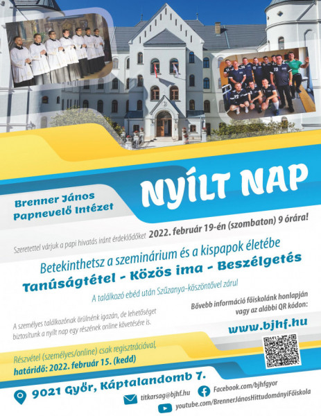Az érdeklődő középiskolás fiúkat, felnőtt férfiakat szeretettel várják a nyílt napra a szeminárium elöljárói és növendékei.