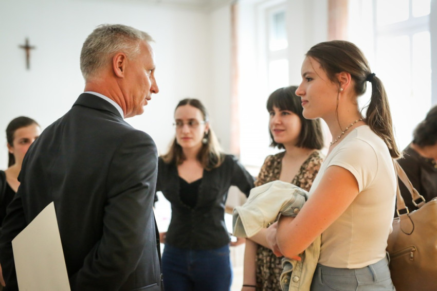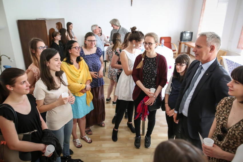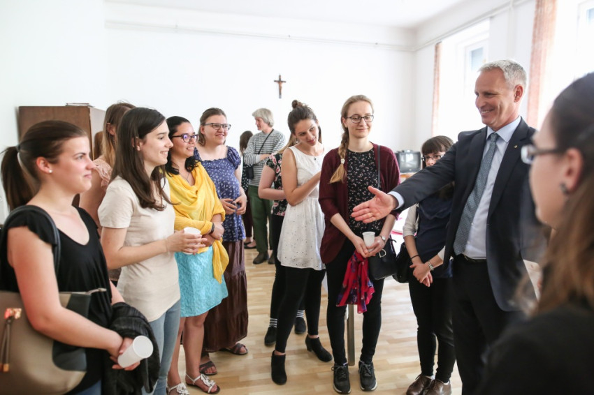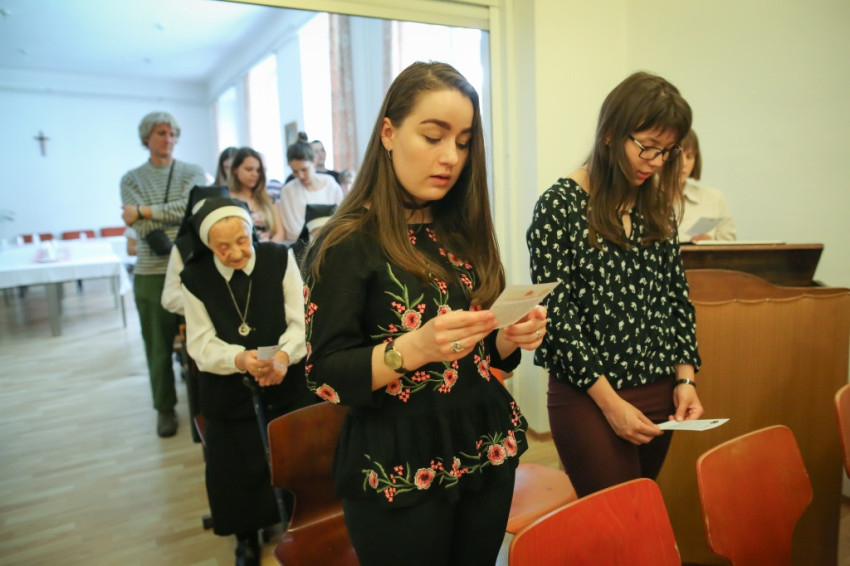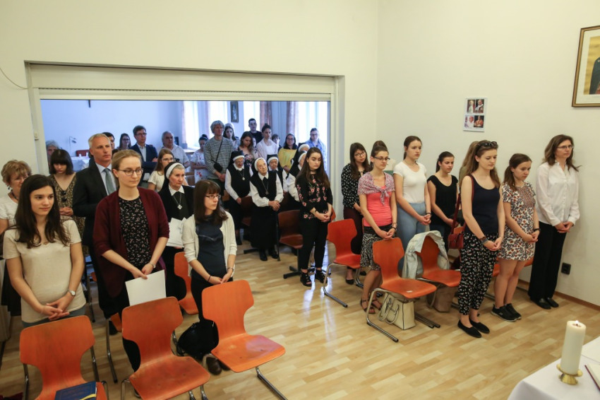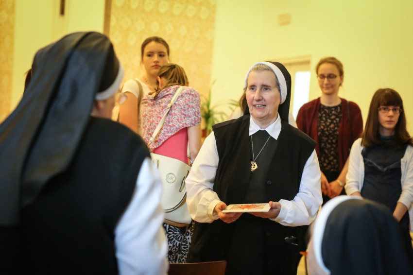 A fiatalok egy fedél alatt élhetnek itt idős nővérekkel, akiktől tanulni lehet, faggatni lehet őket a múltról – fordult az otthon lakóihoz. Azt kérte az egyetemista és főiskolás lányoktól, hogy legyenek eredményes nők; vállalják mindig hitüket, legyenek jó és boldog édesanyák, és aki a nővéri hivatás hangját hallja szívében, vállalja a szerzetességet.