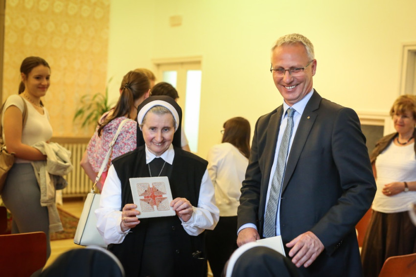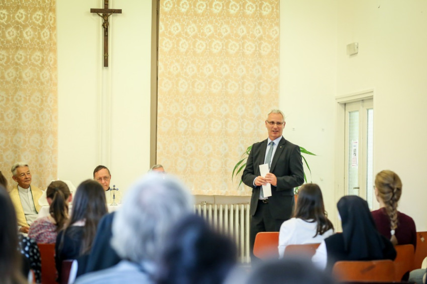 Soltész Miklós a szentmise után köszöntötte a jelenlévőket. Ő is szólt az előző nap Szombathelyen boldoggá avatott Brenner Jánosról, kiemelve a vértanú pap minden üldöztetés ellenére megvallott s vállalt katolikus hitét. Az államtitkár hangsúlyozta: a kongregáció nővérei is sokat szenvedtek, hiszen a háború előtt még húsz intézményük működött hazánkban, ma már csupán kettő. El akarták tőlük venni a jövőt, de a Gondviselés segítségével most a fiatalokon keresztül épp azt építhetik.