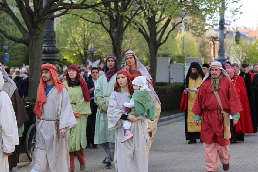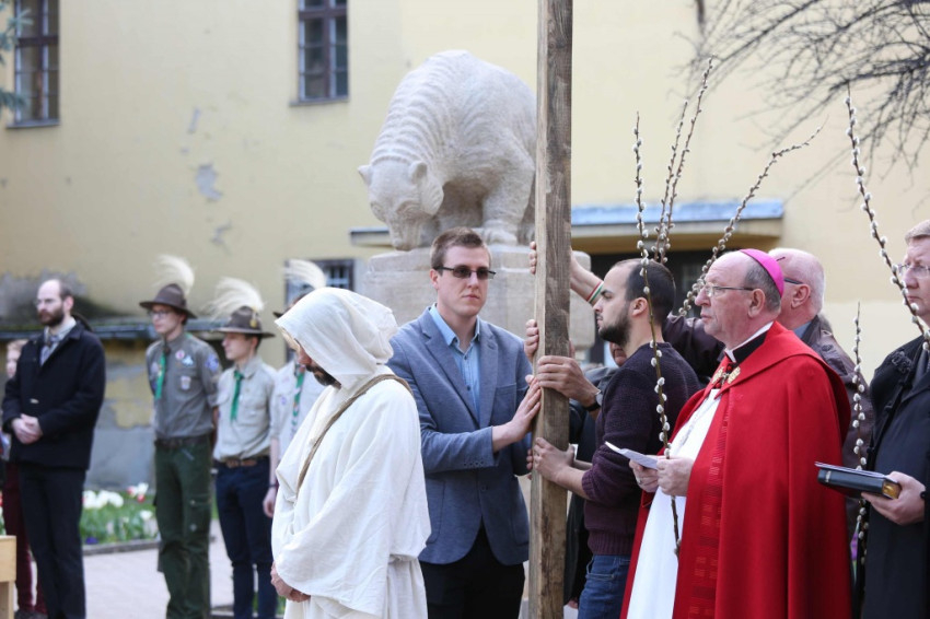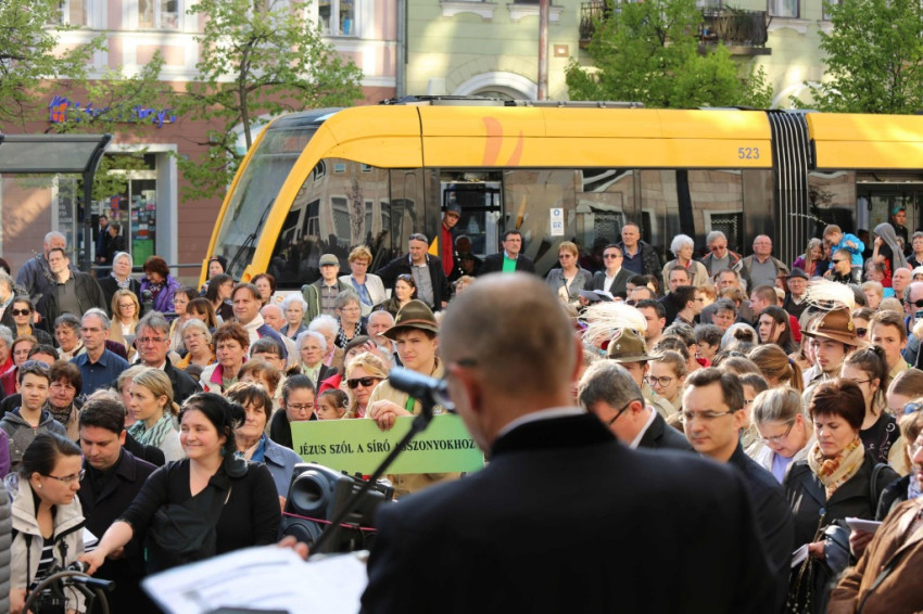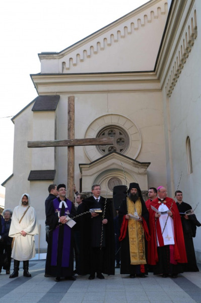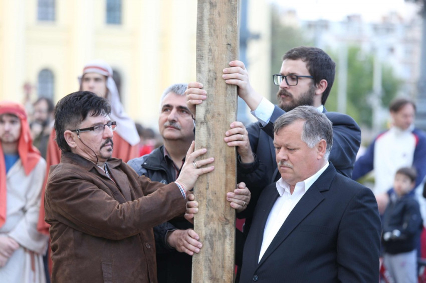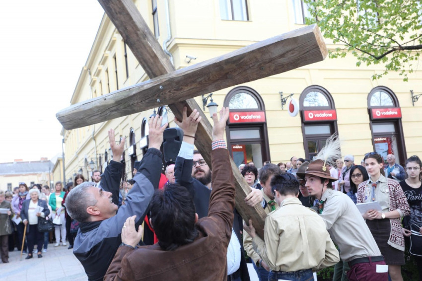 A barkaszenteléssel kezdődő keresztúthoz több százan csatlakoztak, az állomásokat egy-egy közösség „fogadta örökbe”. A keresztút elmélkedéseit Varga Klára és Janka Barnabás színművészek olvasták fel.