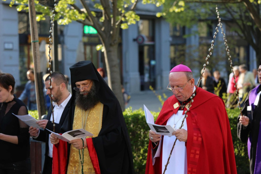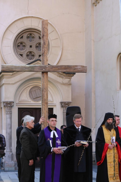 Az ökumenikus keresztúton többek között Kocsis Fülöp görögkatolikus érsek-metropolita, Fekete Károly református püspök, Asztalos Richárd evangélikus lelkész, Papp László, Debrecen polgármestere és Komolay Szabolcs alpolgármester is részt vettek.