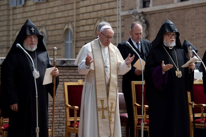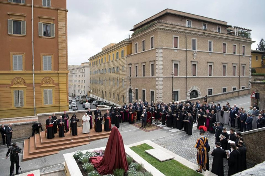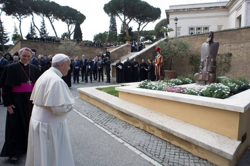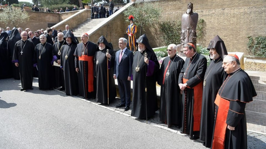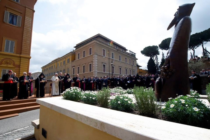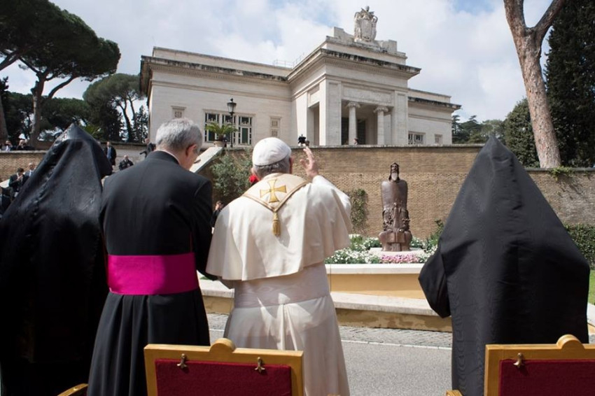 A szobor makettjét 2016 júniusában, örményországi apostoli útja során mutatták be Ferenc pápának. Felavatása alkalmat adott, hogy jobban elmélyítsék a Szentszék és Örményország, valamint az örmény apostoli egyház és a Katolikus Egyház közötti kapcsolatokat. Ferenc pápa április 5-én délelőtt Szerzs Szargszjant, Örményország elnökét és kíséretét fogadta, majd pedig II. Karekin pátriárka, örmény katholikosz és kísérete, valamint I. Aram, a cilíciai örmény apostoli egyház katholikosza és kísérete járult a pápa elé.