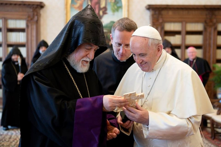 Az örmény elnök a gaianéi templom modelljével ajándékozta meg Ferenc pápát, aki egy 4. századi, a béna meggyógyításáról szóló evangéliumi történetet ábrázoló gipszlenyomatot adott át az államfőnek. A műtárgyon kívül Ferenc pápa az Amoris laetitia, az Evangelii gaudium és a Laudato si’ kezdetű pápai dokumentumok, valamint az idei béke világnapjára írt üzenetének egy példányával is megajándékozta az örmény elnököt.