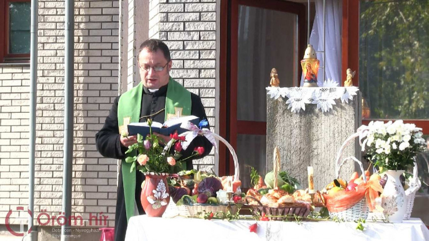 A terményeket és az elkészült ételeket Bákonyi János atya áldotta meg. Az ünnepen jelen voltak az orsolyita nővérek is.