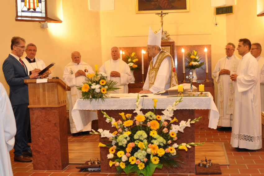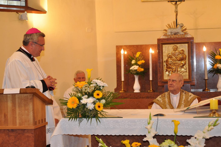 Szentbeszédében utalt a 65 év alatt végbement megannyi társadalmi és egyházi változásra. Említést tett arról, hogy az élet számos területén mennyi új kihívás született, s hosszú időn át mennyi drámai küzdelmet éltünk át a múltra jellemző egyházellenes légkörben. Sajnos még ma is látjuk és tapasztaljuk körülöttünk az ateizmus és a materialista szemléletmód következményeit.