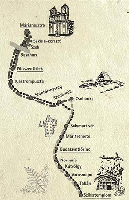 Útvonal: Csobánka, Élet Háza – Csobánkai Szentkút – Hosszú-hegy – Klastrompuszta – Pilis-nyereg – Pilisszentlélek – Maróti-hegyek – Basaharc, rév – Szob – Sukola-kereszt – Márianosztra.