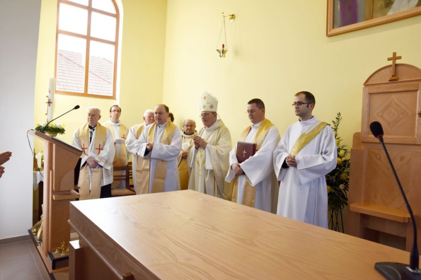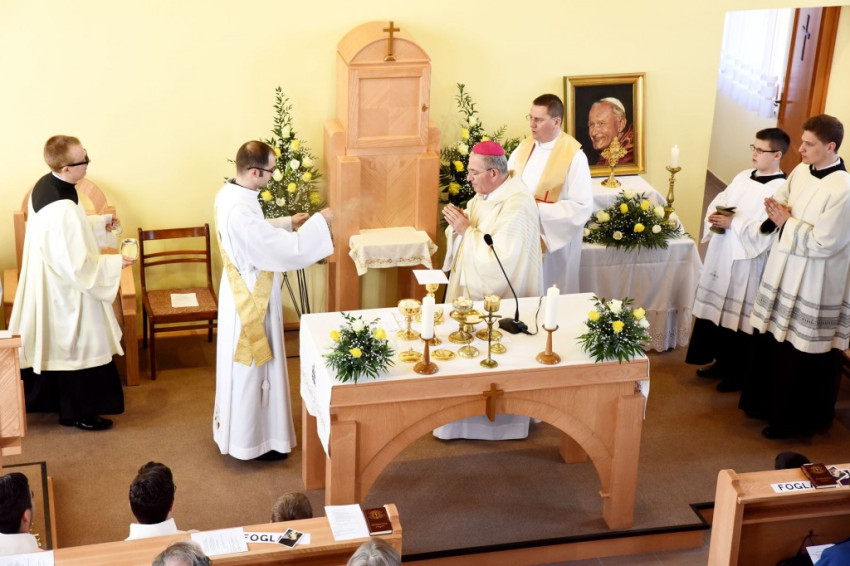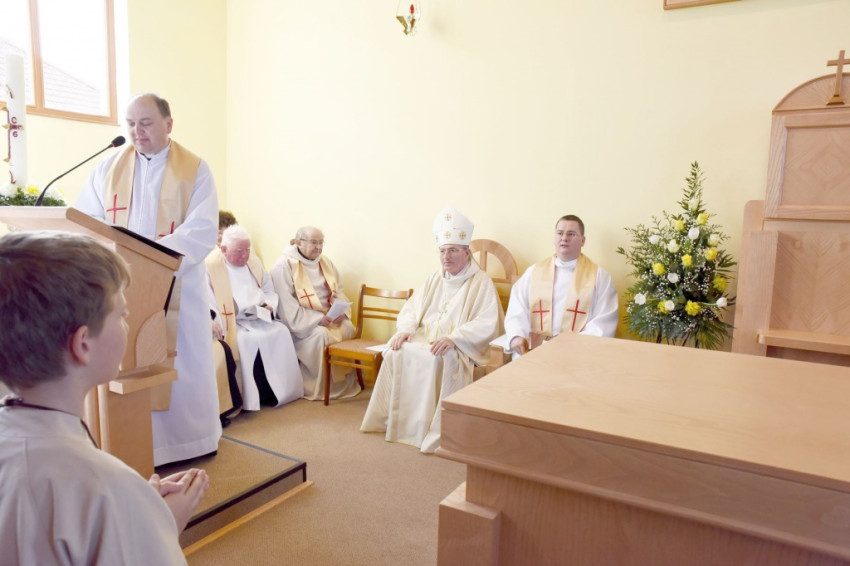 A szentmise elején a főpásztor körbejárva megáldotta az új templomot és annak oltárát.