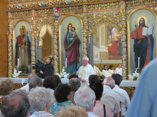 A papszentelésen részt vett és homíliát mondott a zarándokcsoportjával vendégségbe érkező, s pappá szentelésének 50. évfordulóját ünneplő Korzenszky Richárd, a tihanyi apátság perjele.