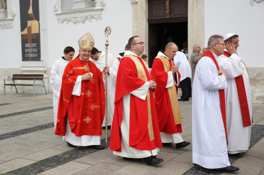 Másnap, október 26-án a győri Czuczor Gergely Bencés Gimnázium egész közössége együtt ünnepelte Bognár István püspöki irodaigazgató, győri székesegyházi plébános vezetésével a szentmisét.
