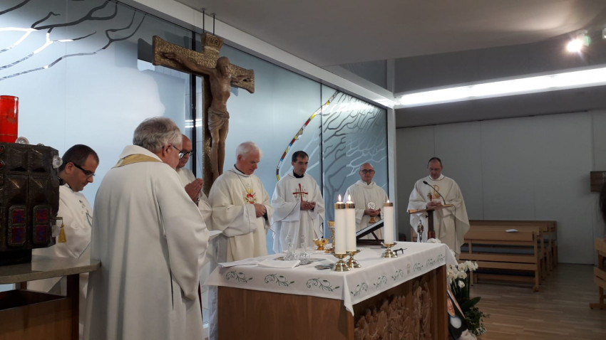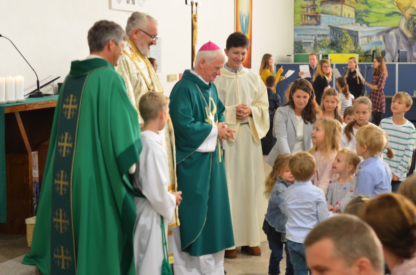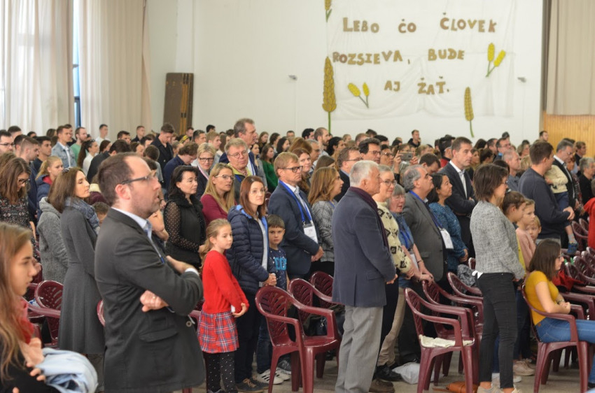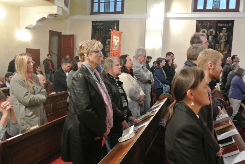 A vasárnapi szentmisét a Comenius Egyetem kápolnájában ünnepelték fiatal szlovák családok, seregnyi gyerek társaságában.
