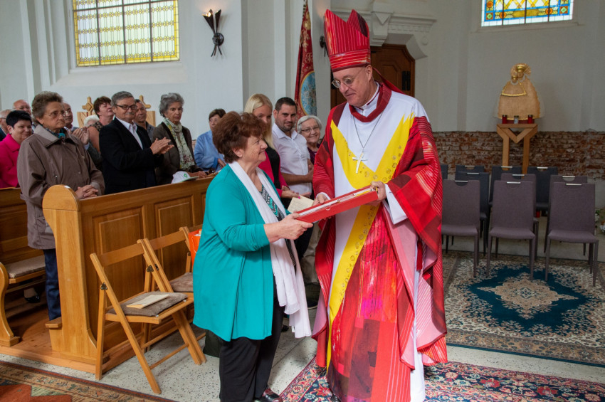 A szentmise végén Ägidius J. Zsifkovics, az Eisenstadti Egyházmegye főpásztora köszönetét fejezte ki Elfriede Jaindl asszonynak és Takács Gyula atyának a templomért végzett áldozatos és fáradhatatlan munkájukért.