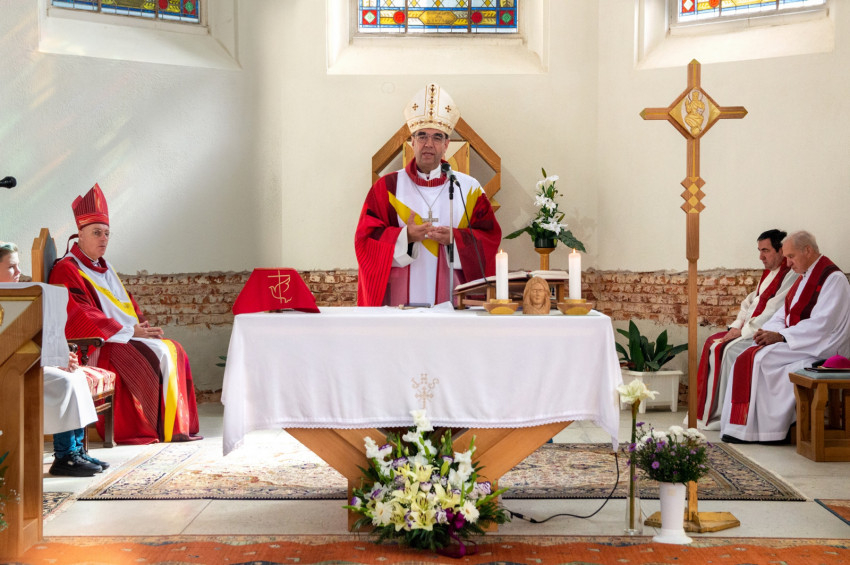 A főpásztor felidézte a templom 1951 utáni pusztulását, az 1970-es évekbeli határozatot a templom lebontásáról, valamint a burgenlandi hívek imádságát, összefogását a templomért ami elvezetett az 1992-es újraszentelésre.
