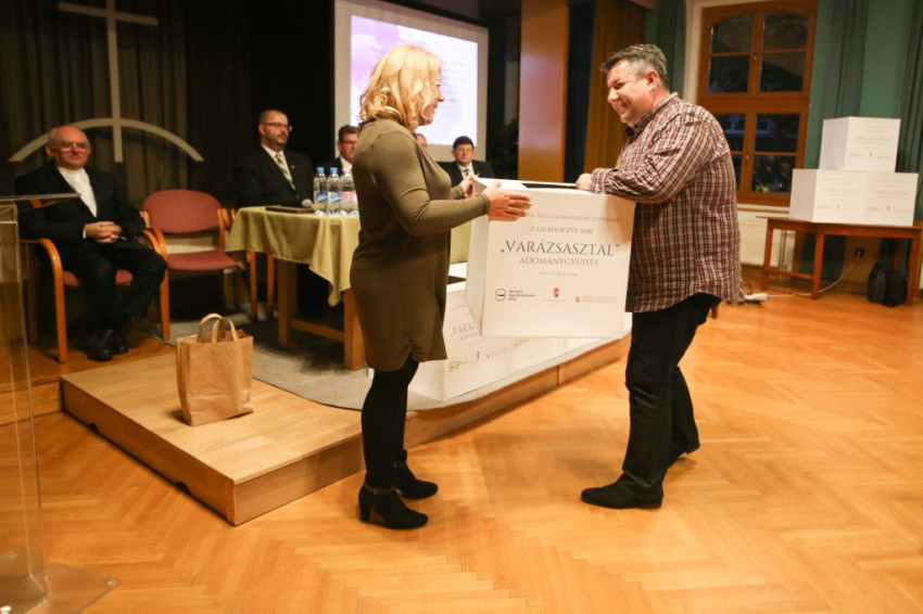 A gyűjtést és az erre szolgáló ajándékládákat Varga László megyéspüspök áldotta meg, aki hálát adott a kezdeményezésért, majd Péter Gabriella, az Európai Realitas Közhasznú Egyesület elnöke beszélt a Varázsasztal kampány céljairól.