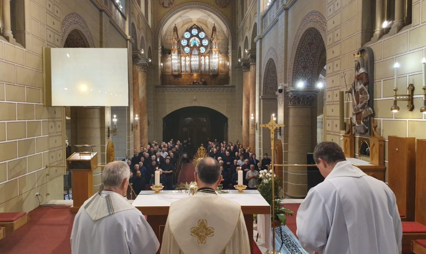 A szokásos két helyszín – a keszthelyi Kis Szent Teréz-plébániatemplom és a veszprémi Szaléziánum Érseki Turisztikai Központ – helyett most a veszprémi Szent Mihály-bazilika adott otthont az összejövetelnek, hiszen ez volt az első alkalom, hogy Udvardy György érsek a beiktatása után a főegyházmegyében szolgáló papokkal és diakónusokkal találkozhatott.