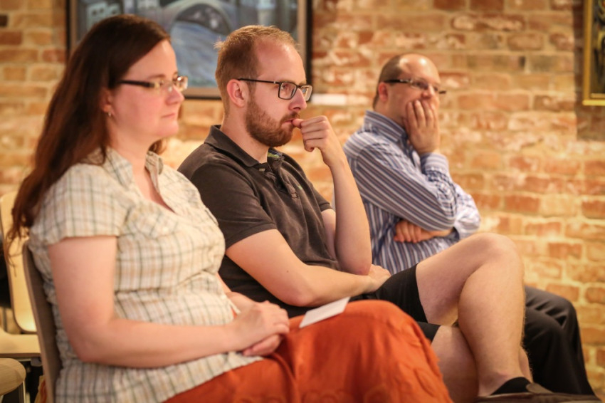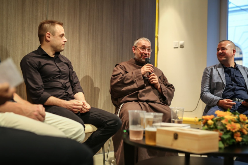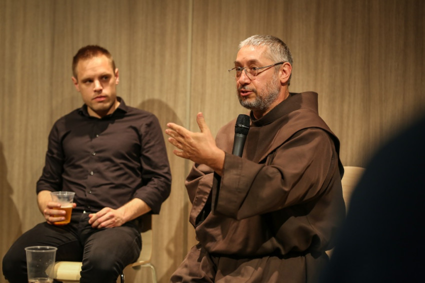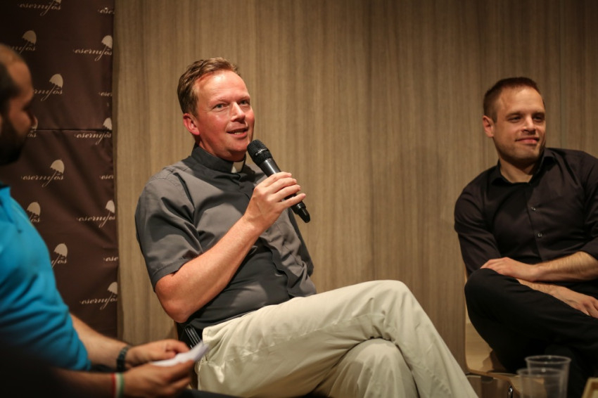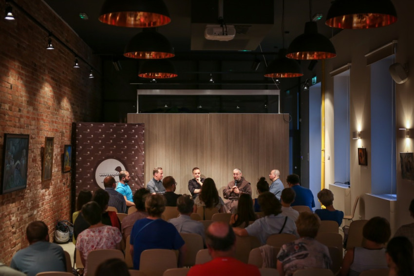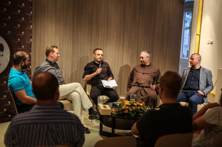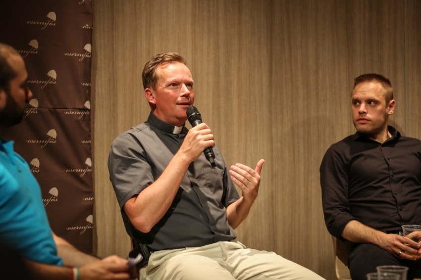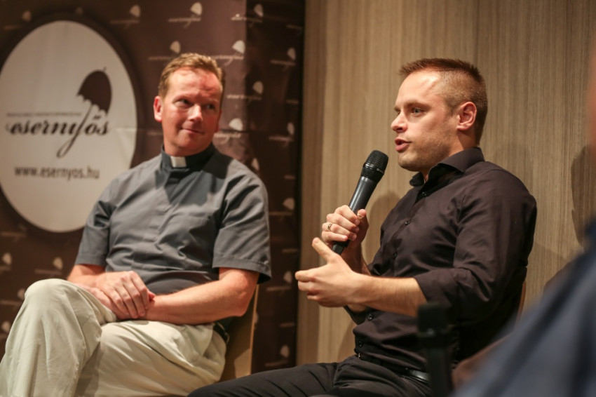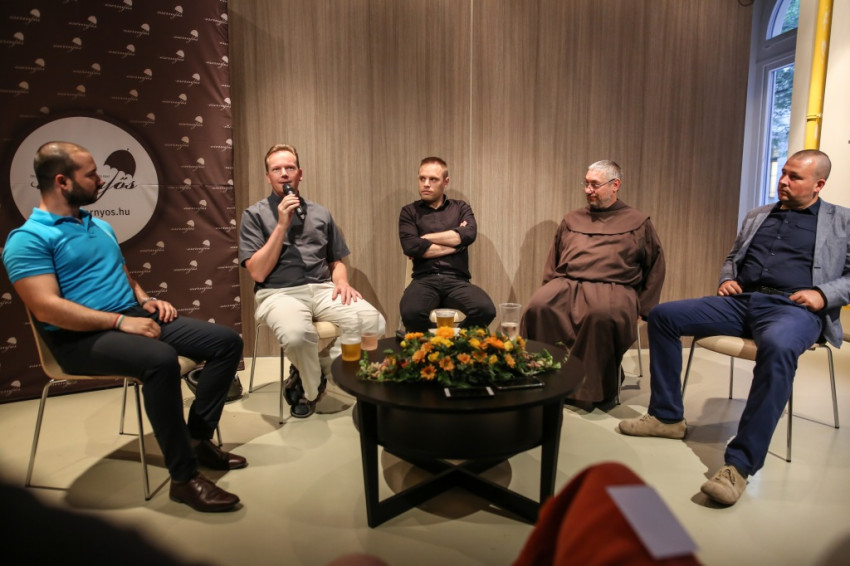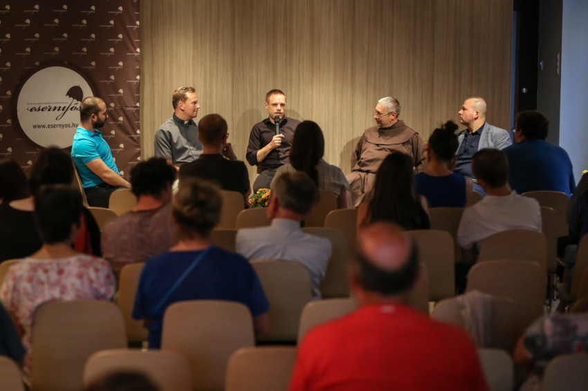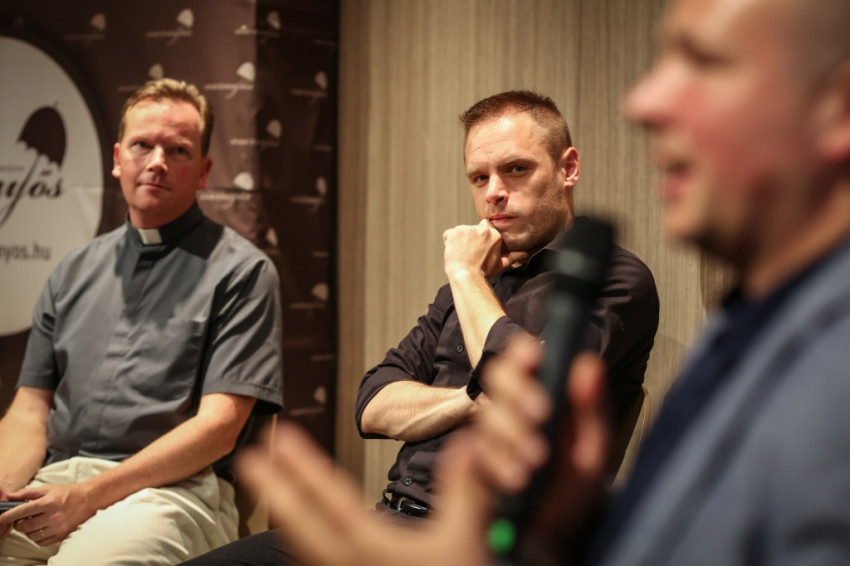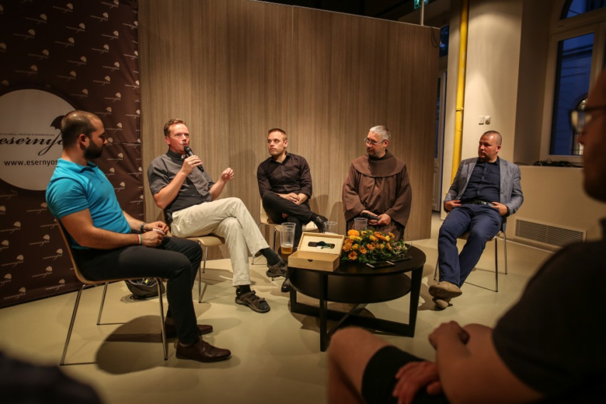 Fábry Kornél katolikus és Boros Dávid baptista lelkész már ismerős kettőse Kiss Didák ferences szerzetessel és Márkus Tamás református lelkésszel egészült ki. A moderátor a sorozat budapesti szervezőgárdájának tagja, Hortobágyi Ferenc volt.