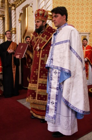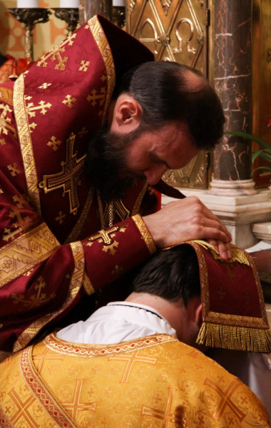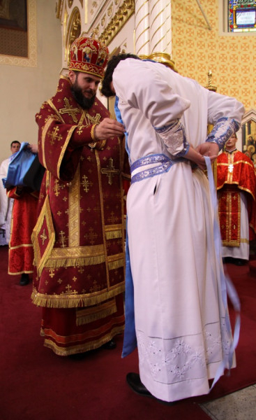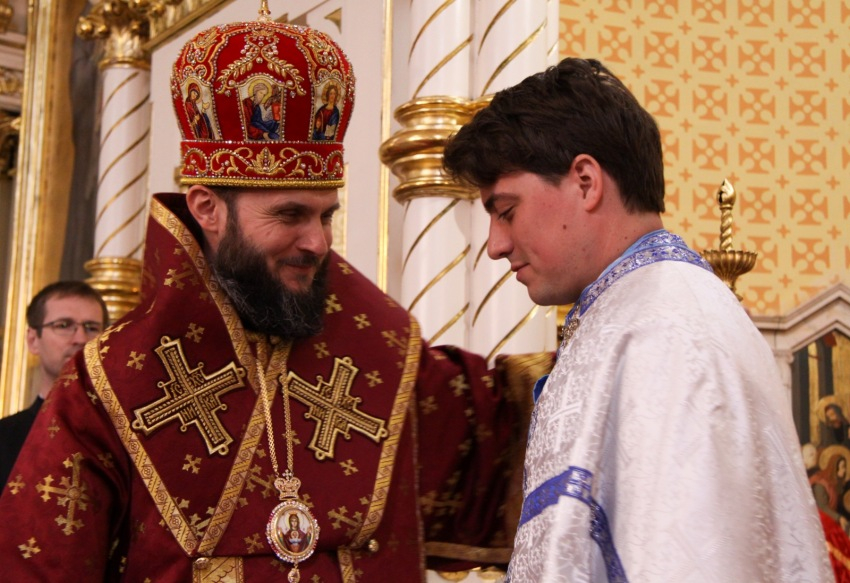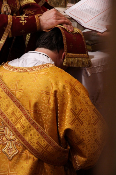 A szentelési ima, a nagy ekténia (könyörgés) és a sokszorosan felhangzó „Axiosz!” (méltó) után Szocska Ábel a papi öltözettel ruházta fel az újszenteltet.