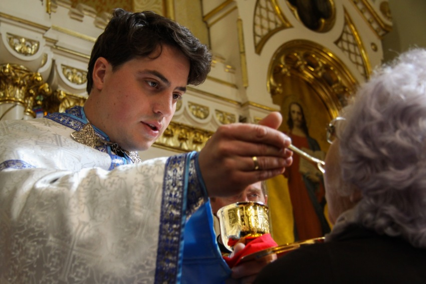 A papszentelés liturgiáját az áldozás követte – amelyen már az újszentelt is áldoztathatott. A Görögkatolikus Egyházban az alszerpap semmilyen körülmények között nem áldoztathat, nem is érintheti a szentséget; az eggyel magasabb rangú diakónus is csak püspöki engedéllyel áldoztathat.