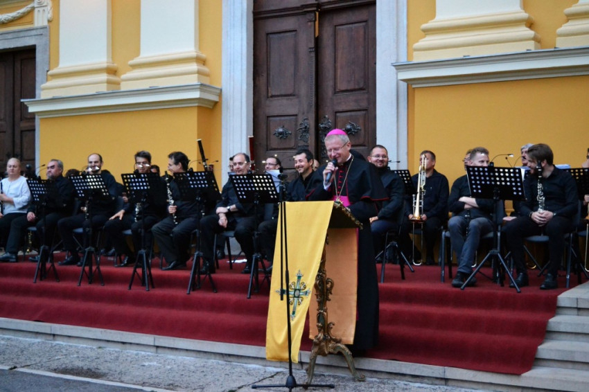 Lakatos Attila, a püspökség kulturális referense köszöntőbeszédében úgy fogalmazott, hogy a koncertnek teret adó barokk városrészben találkozik a történelem és a lelkiség. A Nagyboldogasszony-székesegyház nem egyszerűen az európai barokk egyik kiemelkedő, illetve a város fontos műemléke; az épület olyan kor formanyelvén készült, amely még értett egy nagyon fontos üzenetet: a monumentalitás önmagában nem érték, de – mint az emberi erőfeszítés kifejeződése és gyümölcse – igenis képes megjeleníteni Isten mindenhatóságát és dicsőségét.