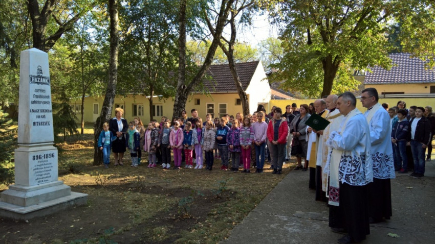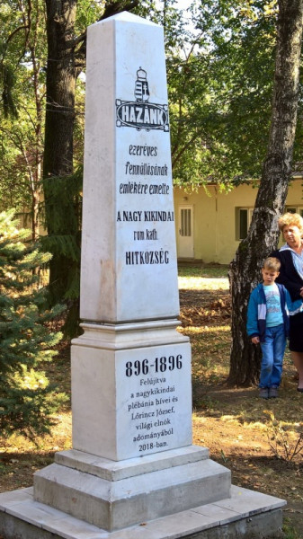 Az 1896-ban állított emlékművet az első világháború után ledöntötték; most, százévnyi hányattatás után új helyén hirdeti „hazánk dicső fennállásának emlékét”. A felújított oszlop leleplezése és megáldása előtt szentmisét mutatott be Német László püspök.