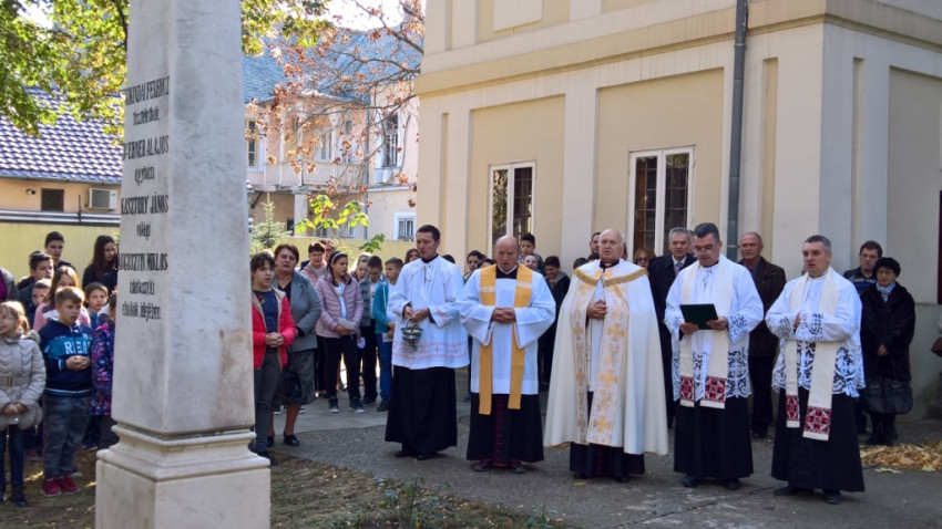 Amikor rátaláltunk az enyészetnek indult emlékműre, az a nemes cél vezérelt bennünket, hogy továbbra is töltse be szerepét, hivatását ez a kő, mely a miénk, őseinké és a jövő nemzedéké – folytatta. – Egyházmegyei zsinatot kezdtünk: megbeszéltük az evangelizációs és gyermek-, illetve ifjúságpasztorációs munkadokumentumokat, s átérezzük felelősségünket a hit továbbadásáért és nemzeti önazonosságunk megőrzéséért. Erősítse meg ez a mai ünneplés, megemlékezés azt az érzést, hogy „Jó nekünk itt”. Tegyünk meg mindent, hogy a kapott talentumokkal jobbá és szebbé tegyük a világot, szülőföldünket, ahol élünk, hogy holnap és holnapután is legyen „nekünk itt”.