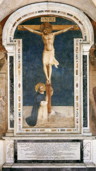 Fra Angelico: Szent Domonkos kereszthódolata (1442)