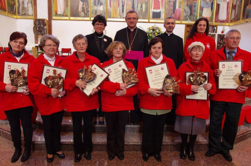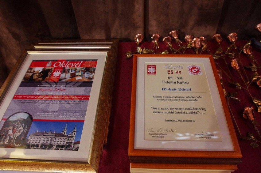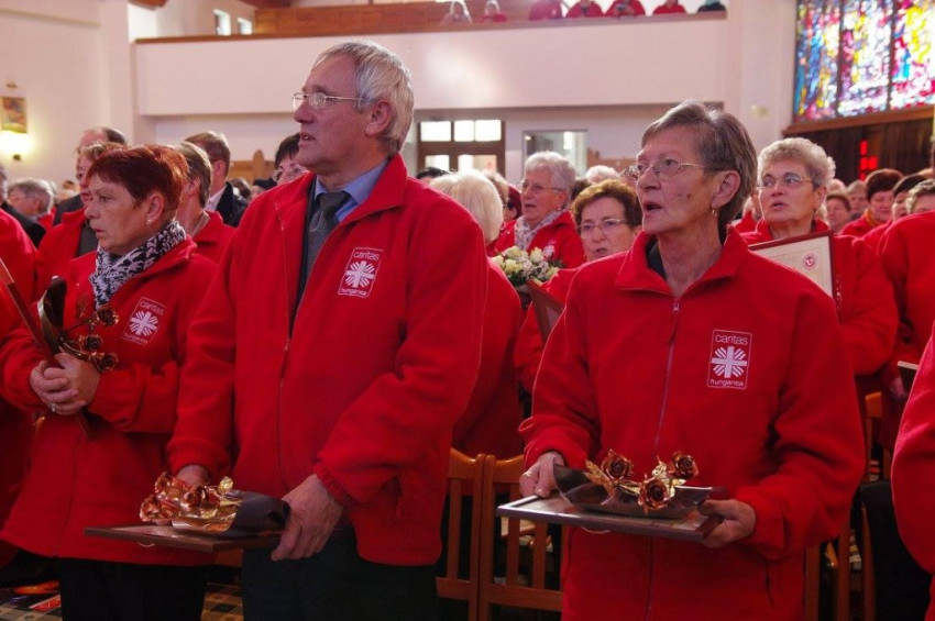 Az elmúlt években, évtizedekben végzett áldozatos munkájukért idén is elismerő oklevelet vehettek át a karitász önkéntesei Veres András megyéspüspöktől és Császár István egyházmegyei kormányzótól. Tíz plébániai karitászmunkatárs kapott kitüntetést 25 éves munkájáért. A tízéves nardai karitásztábor tizenöt önkéntes munkatársát is dicsérő oklevéllel és egy vörösréz rózsacsokorral köszöntötte Veres András. Emellett négy cégnek, vállalkozónak is megköszönték önzetlen segítségét.