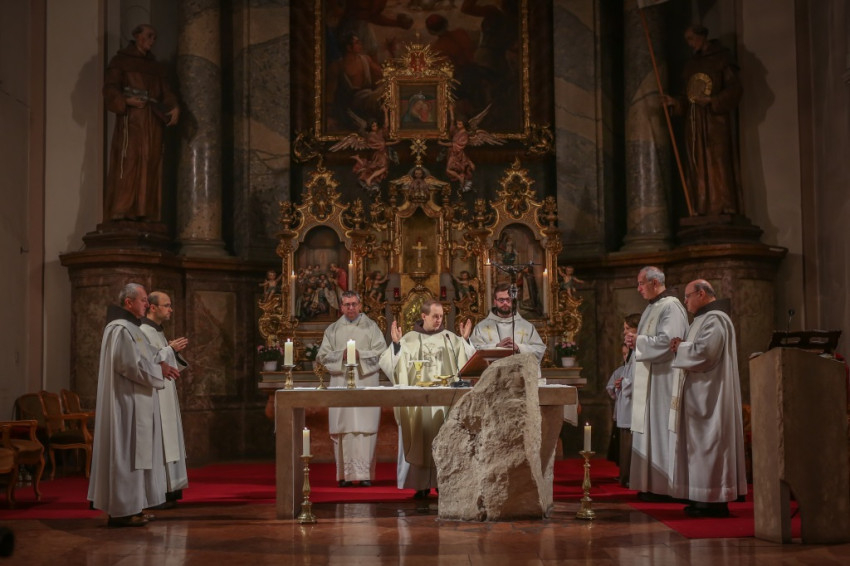 Dobszay Benedek ferences tartományfőnök a templomot megtöltő hívő sokaságot köszöntve arról beszélt: Isten szüntelenül megújítja Egyházát. Nem külsődleges módon, hanem belülről, megragadva, elindítva embereket, hogy általuk megújuljon az egész közösség.