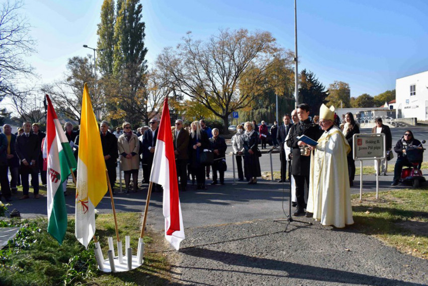 Sütő László polgármester ünnepi beszédében Szent II. János Pál pápa nagyságát, történelmi szerepét méltatta, felidézve életének magyarokhoz kapcsolódó elemeit.