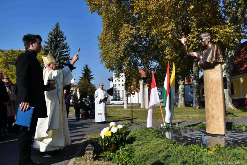 A műsor után került sor a szobor leleplezésére, Varga László megyéspüspök pedig megáldotta és megszentelte az alkotást.