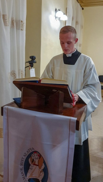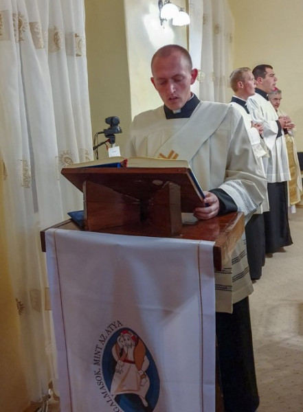 Mi a teljes életpálya titka, módja, mikéntje? – tette fel a kérdést a szónok. Az evangéliumból kapunk választ: „Hasonlítsatok az olyan emberekhez, akik urukra várnak, hogy mihelyt megérkezik a menyegzőről és zörget, rögtön ajtót nyissanak neki. Boldogok azok a szolgák, akiket uruk megérkezésekor ébren talál. És ha a második vagy a harmadik őrváltáskor érkezve is így találja őket, boldogok azok a szolgák” (Lk 12,36–38). Éberen várjátok. Kezetekben pedig égő gyertya legyen. Az éberség tehát az állandó Istenre hangolódás. Az égő gyertya pedig nem más, mint a tettekkel megpecsételt hitünk – zárta prédikációját Jakkel Tamás diakónus.