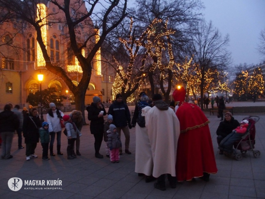 A Kalocsa-Kecskeméti Főegyházmegye Családbizottsága és a Kecskemét-Széchenyivárosi Közösségépítő Egyesület (SZÉK) által működtetett Parázs Központ szervezésében Kecskemét főterén december 5-én Szent Miklós mai képviselője várta a gyerekeket – akik a hideg ellenére is szép számmal érkeztek.